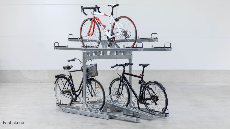 Vårt tvåvåningcykelställ är en smart och flexibel lösning. Det modulära systemet gör att du kan anpassa och utöka ditt cykelställ över tid, beroende på behov och utrymme. Välj mellan olika skenlösningar för att skapa den bästa parkeringen för just din verksamhet: