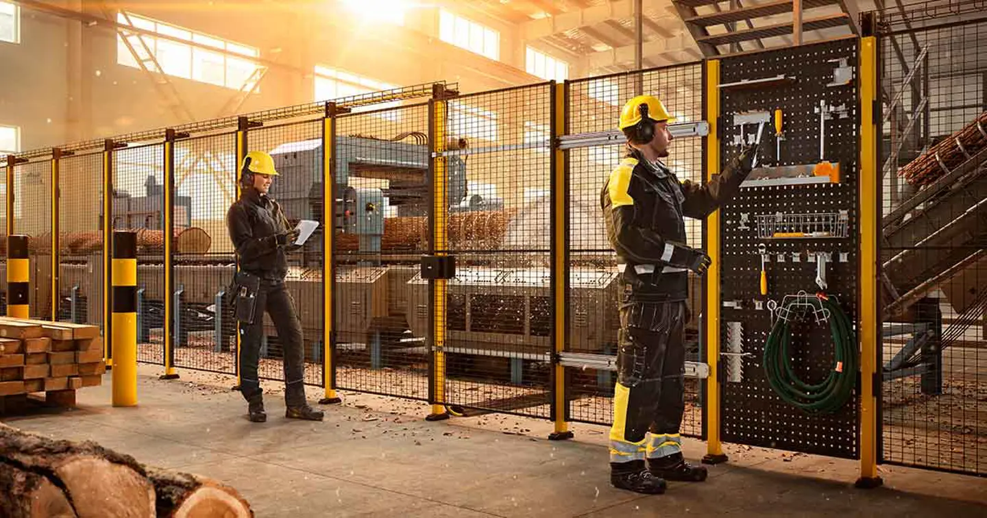 Med verktygstavla och upphängning av sopborstar, skyfflar m.m. finns allt på plats för att kunna sköta och hålla rent runt produktionscellerna. De komponenter som ingår i systemet kan enkelt monteras på säkerhetsväggar med väggmoduler i trådnät.